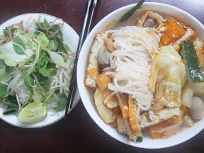 午前7時朝食。「精進ブン麺」。今日は、精進料理を食べる日か?